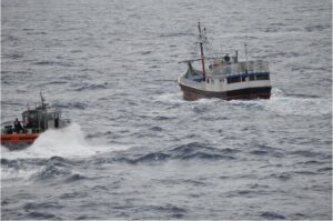 A U.S. Coast Guard crew seized roughly 10,000 pounds of cocaine from a fishing boat in the Atlantic Ocean
