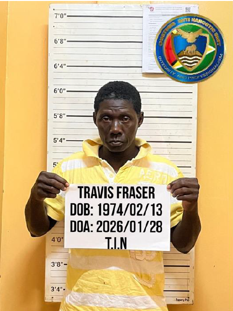 Please be informed that on today’s date, Travis Fraser appeared before Magistrate Rabindranauth Singh at the Leonora Magistrate’s Court on charges related to the offence of possession of narcotics for the purpose of trafficking, to wit, 46 grams of cocaine, where he pleaded not guilty. Fraser was granted bail in the sum of GYD$100,000, and his matter has been adjourned to 22nd April 2026.